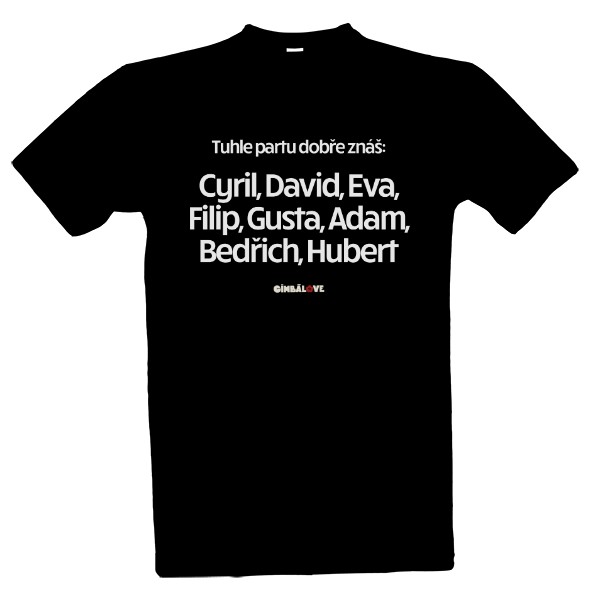 Tričko s potiskem Cyril, David, Eva, Filip, Gusta, Adam, Bedřich, Hubert